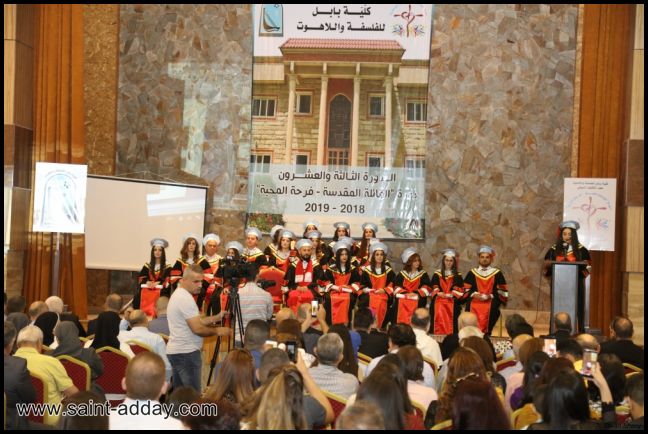 احتفلت كلية بابل للفلسفة واللاهوت ومعهد التثقيف المسيحي، “دورة العائلة المقدسة – فرحة المحبة” (فرع عنكاوا) بتاريخ 8 حزيران 2019 في تمام الساعة السادسة مساء في كنيسة ام المعونة الدائمة في عنكاوا بتخرج كوكبة من أبنائها للعام الاكاديمي 2018-2019 في الدورة الثالثة والعشرون من كلية بابل للفلسفة واللاهوت والتي تتضمن طالب واحد من الكنيسة الكلدانية. وكذلك تسنم خريجو قسم اللاهوت للعام الاكاديمي 2017-2018 شهادة الباكالوريوس في اللاهوت من الجامعة الاوربنيانية في روما ( 6 طلاب). بالإضافة الى منح شهادة الدبلوم في العلوم الدينية لخريجي معهد التثقيف المسيحي (فرع عنكاوا) وهم (20 طالب وطالبة) ويحملون معهم ما زرعته الكنيسة في قلوبهم مدة 3 سنوات من تعليم لكي يكملون رسالتهم ويقطفون ثمار تعبهم.