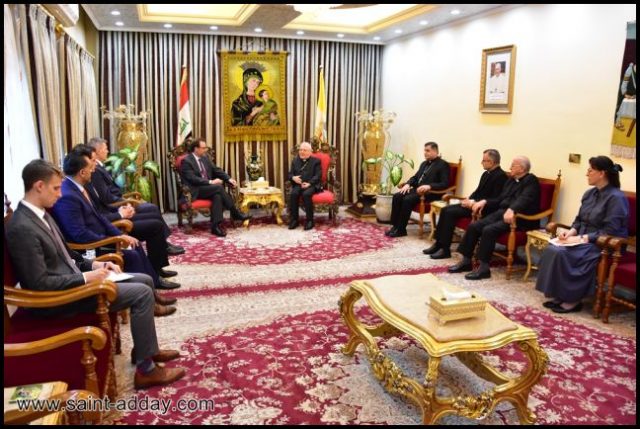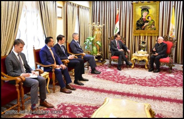 استقبل عصر يوم 25 حزيران 2019 في مقر البطريركية صاحب الغبطة والنيافة البطريرك الكردينال لويس روفائيل ساكو، السيد ديفيد شينكر مساعد وزير الخارجية لشؤون الشرق الأدني ونائبه السيد اندرو بييك، وسعادة السفير الأمريكي في بغداد السيد ماثيو تولر