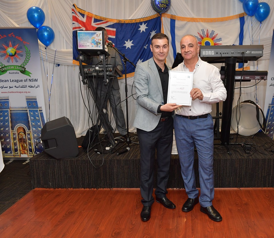 واثناء الاحتفالية قام الكابتن مهند جزراوي مسؤول اللجنة الرياضية مع عدد من اعضاء فريق الرابطة الكلدانية لكرة القدم باهداء الكاس الذي حصل عليه الفريق في البطولة السابقة التي اشترك فيها الى الرابطة الكلدانية واستلمها كل من السادة روئيل شماس مسؤول مكتب سيدني للرابطة ، صلاح كينا وليث الجنو ، سكرتيرا فرع الرابطة. هذا وقد تم تنظيم احتفالية عيد الاب من قبل كل من اللجنة الإعلامية ولجنة الشبيبة التابعتين لفرع الرابطة حيث كان لشباب اللجنتين دور مميز في تنظيم هذه الاحتفالية بشكل اكثر من رائع وبالاخص جهود السيد مروان يوسف مسؤول اللجنة الإعلامية وبمساعدة كل من السيد ولسن حاجو مسؤول لجنة الشبيبة والسيدة مارلين توما مسؤولة لجنة المرأة، والسيدة مريم ايشو عضوة اللجنة الإعلامية